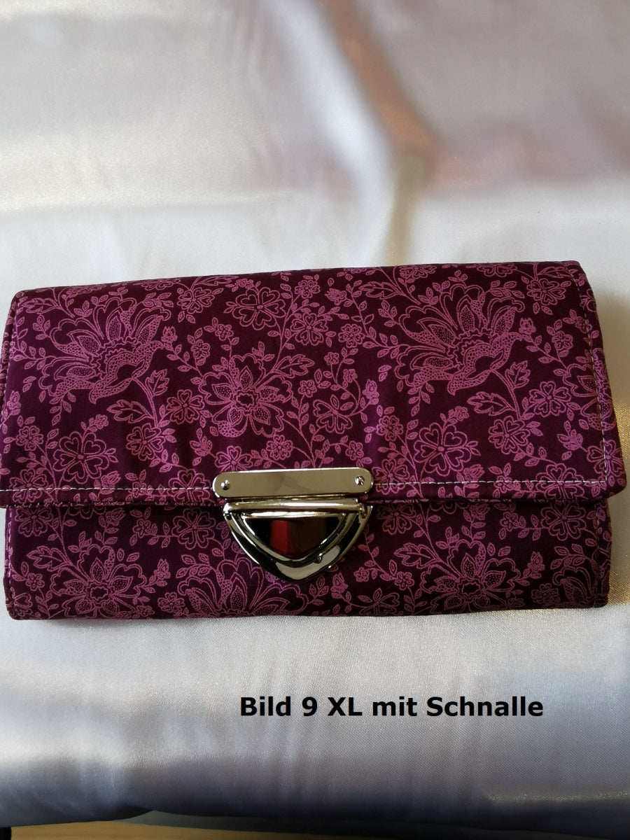 Geldbörse XL mit Schnalle Schwarz mit Altrosa Blumenmuster SOFORT VERFÜGBAR von Atelier MiaMia