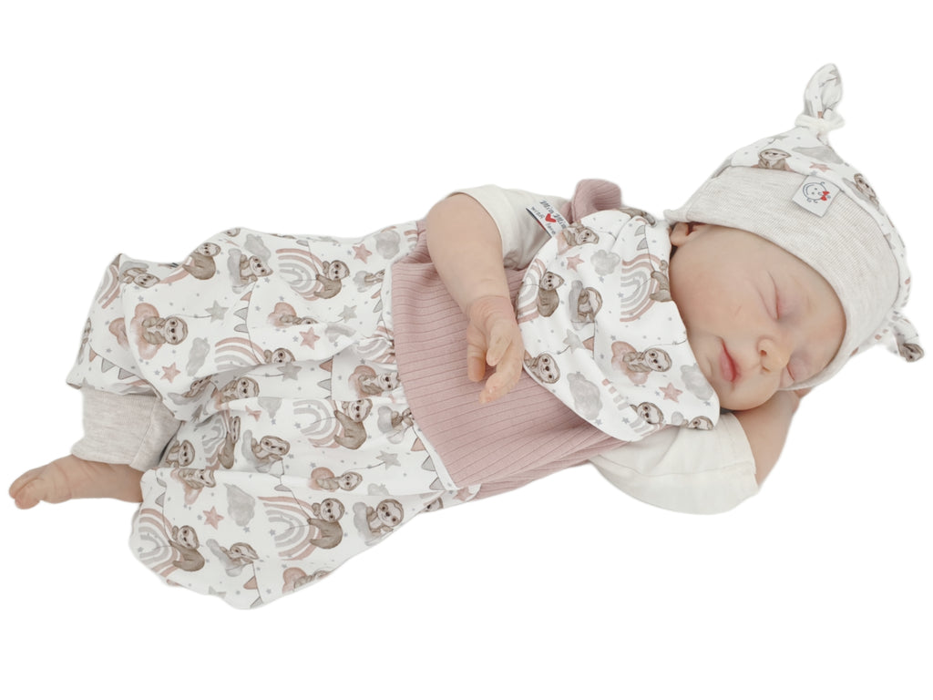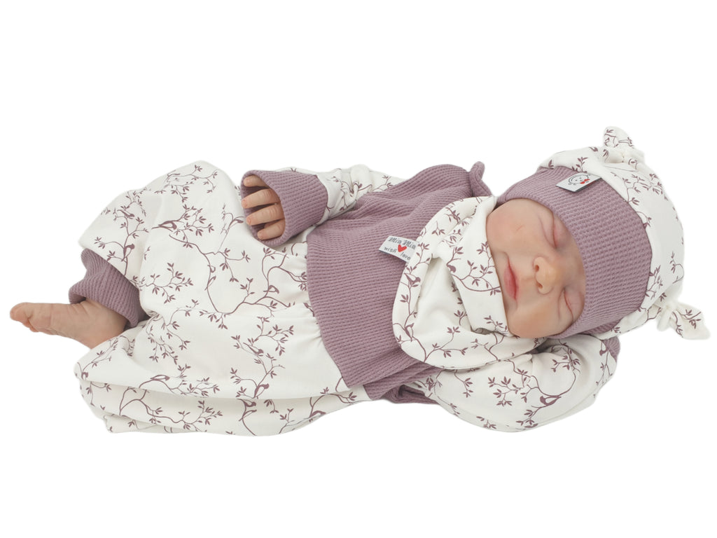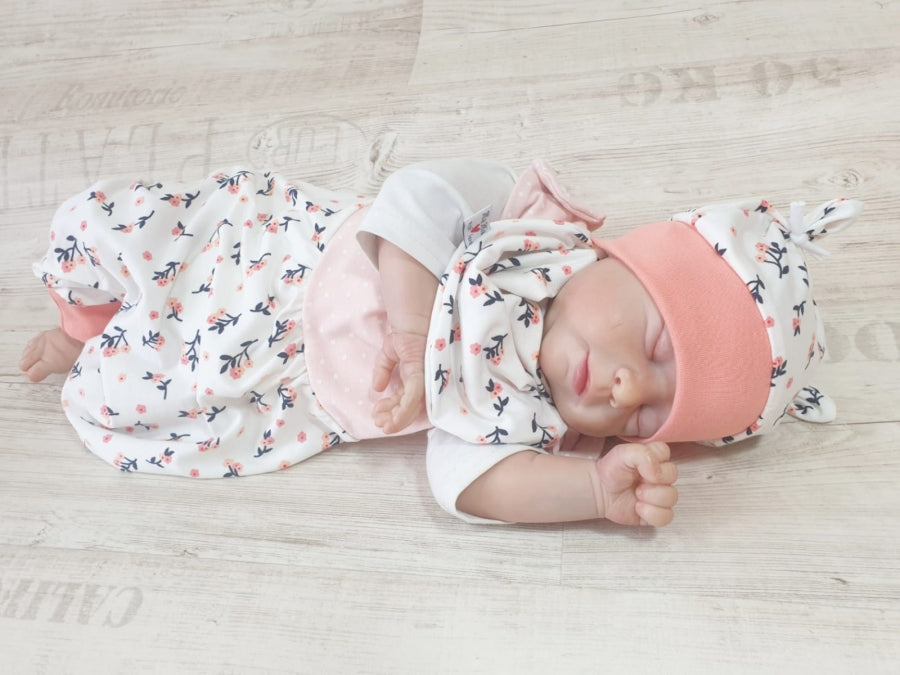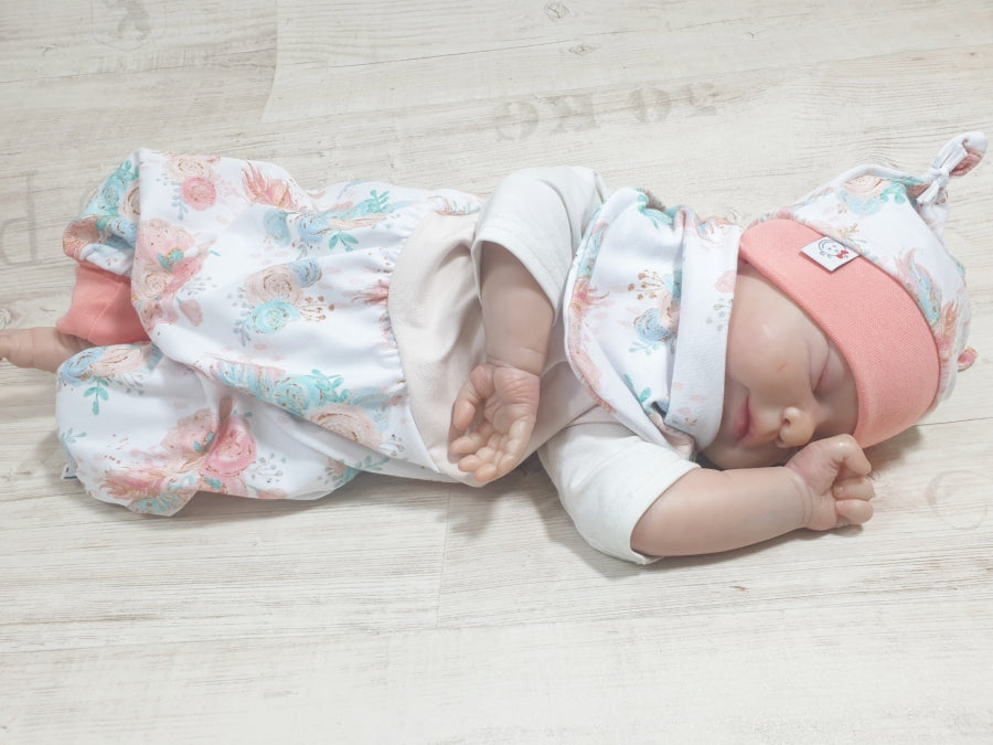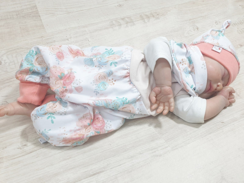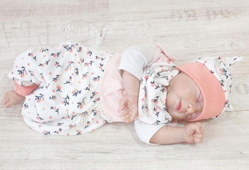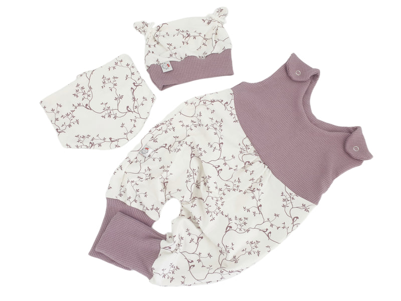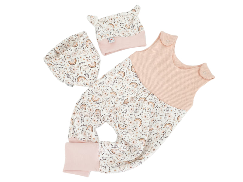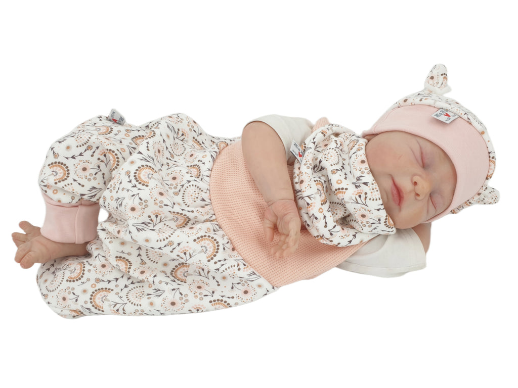 Mitwachs-Strampler | Babyset Blumen Beige – kurz & lang bis Gr. 98 | Handmade