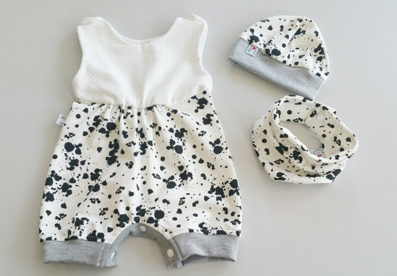 Sommerstrampler kurz auch als Baby Set Schwarze Klexe 108 von Atelier MiaMia