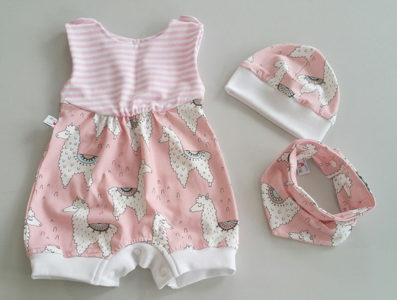 Sommerstrampler kurz auch als Baby Set Rosa Lama 112 von Atelier MiaMia