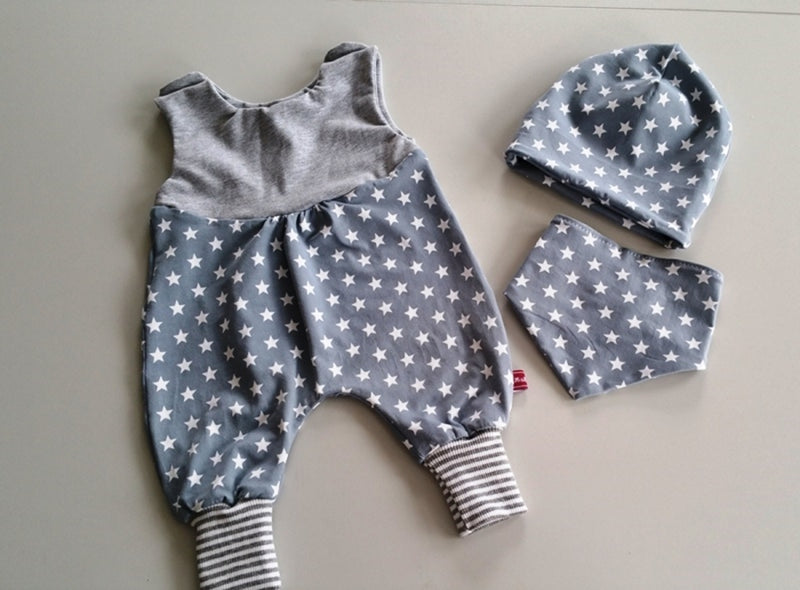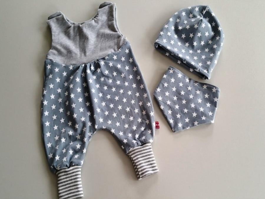 Strampler kurz und lang auch als Baby Grau Sterne 20 von Atelier MiaMia