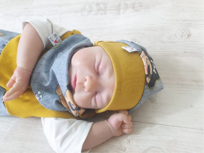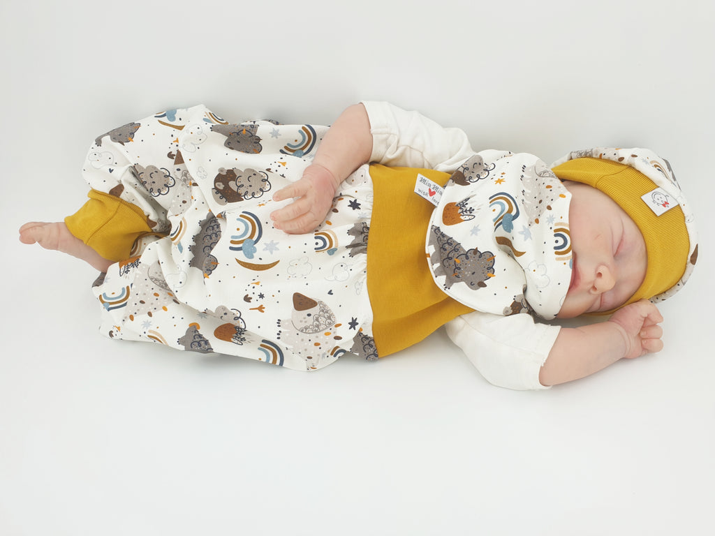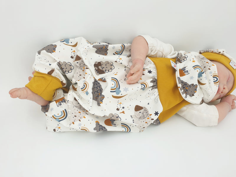 Strampler kurz und lang auch als Baby Set Bären Microwaffel Senf gelb 408 von Atelier MiaMia