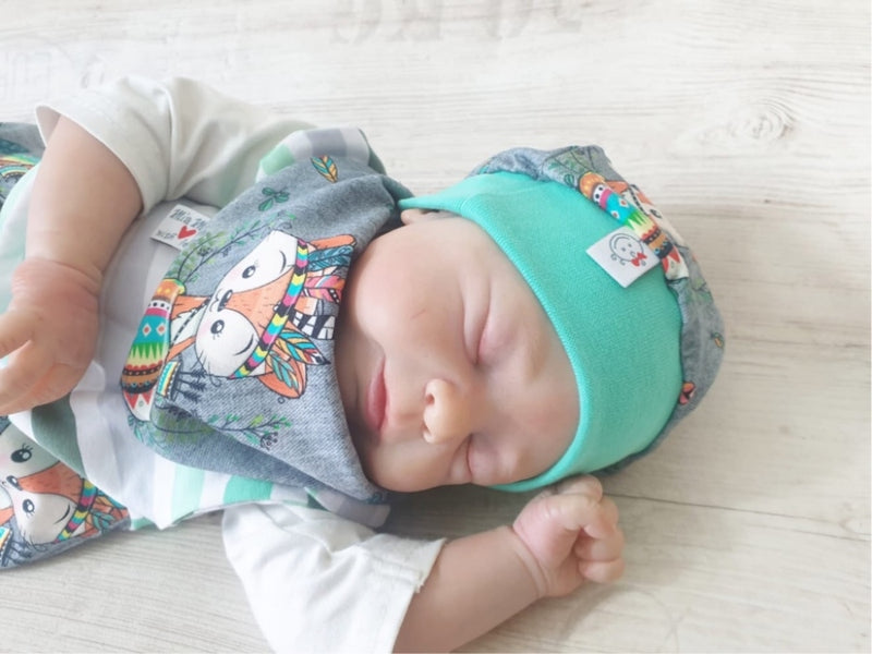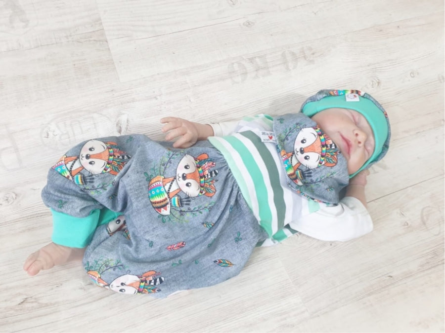 Strampler kurz und lang auch als Baby Set Indianer Fuchs blau 227 von Atelier MiaMia