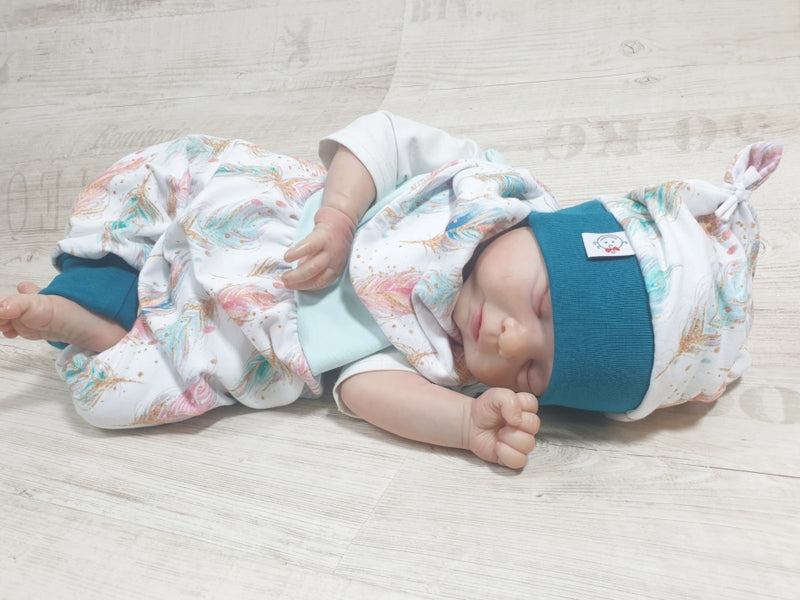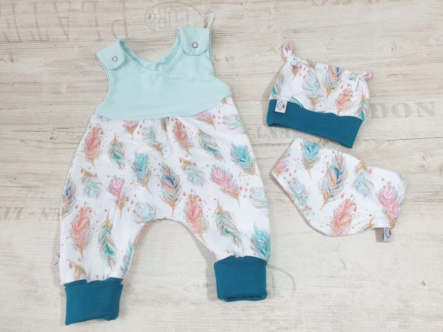 Strampler kurz und lang auch als Baby Set Federn Hellblau 236 von Atelier MiaMia