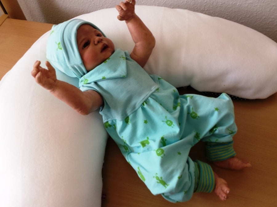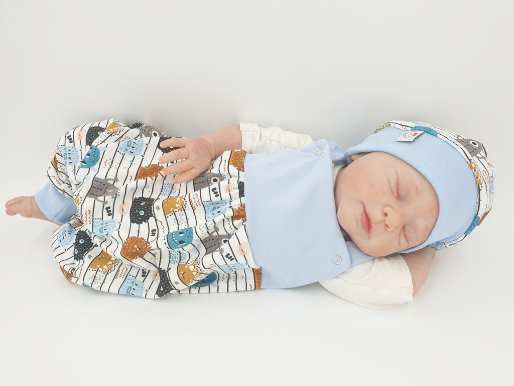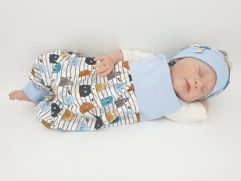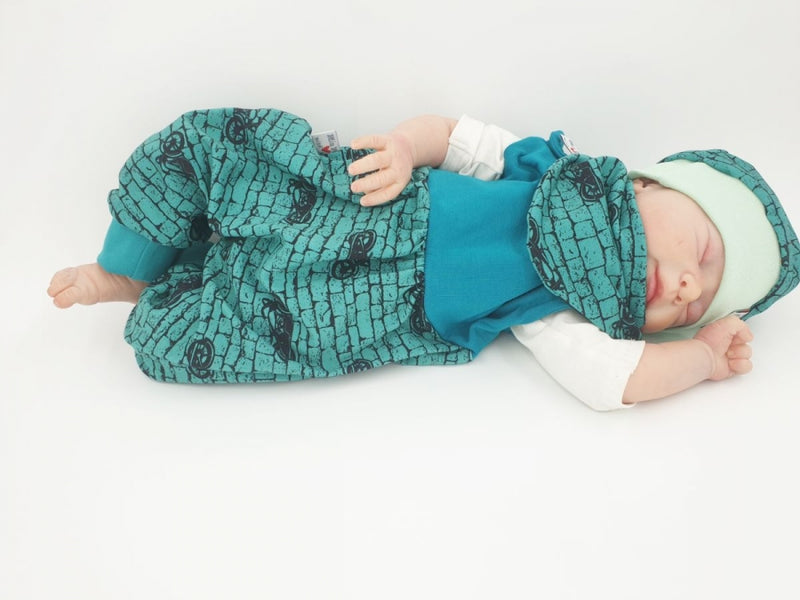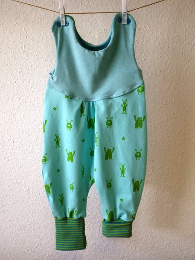 Strampler kurz und lang auch als Baby Set blau, grüne Monster 7 von Atelier MiaMia