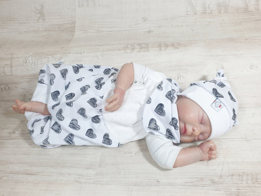 Strampler kurz und lang auch als Baby Set Herzen Schwarz-weiß 306 von Atelier MiaMia