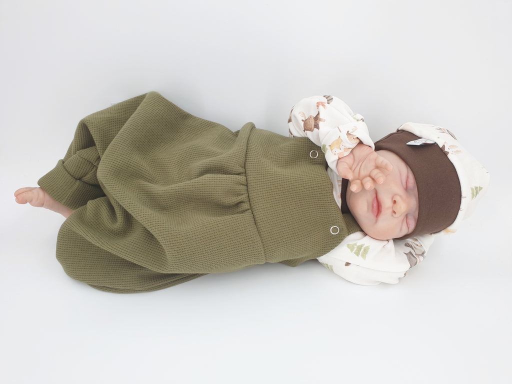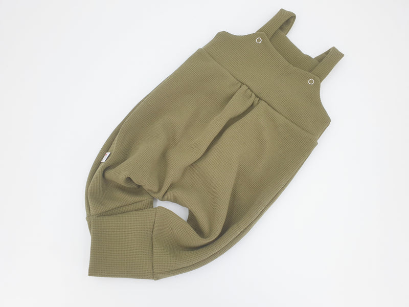 Latzstrampler kurz und lang auch als Baby Set Waffeljersey olive von Atelier MiaMia