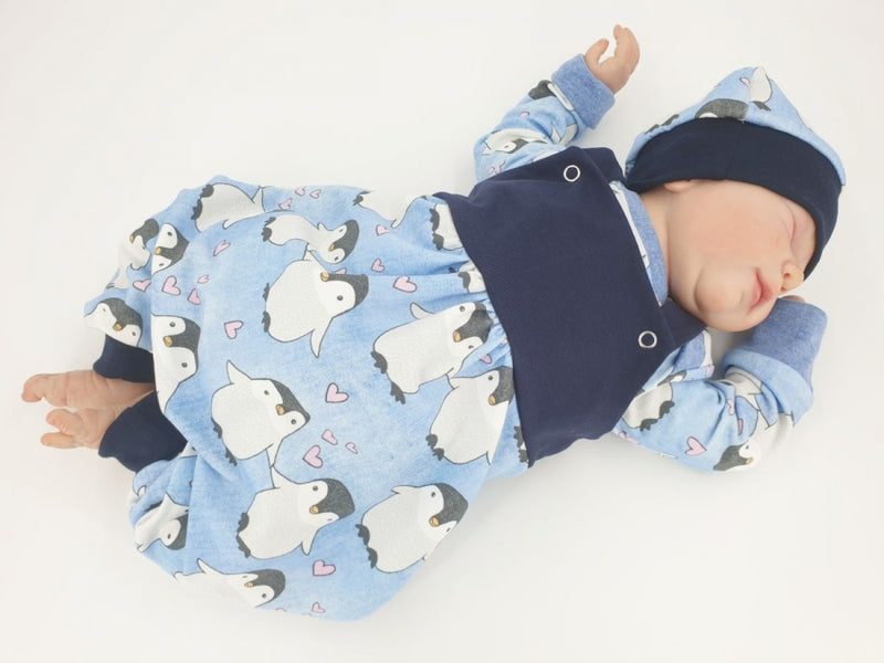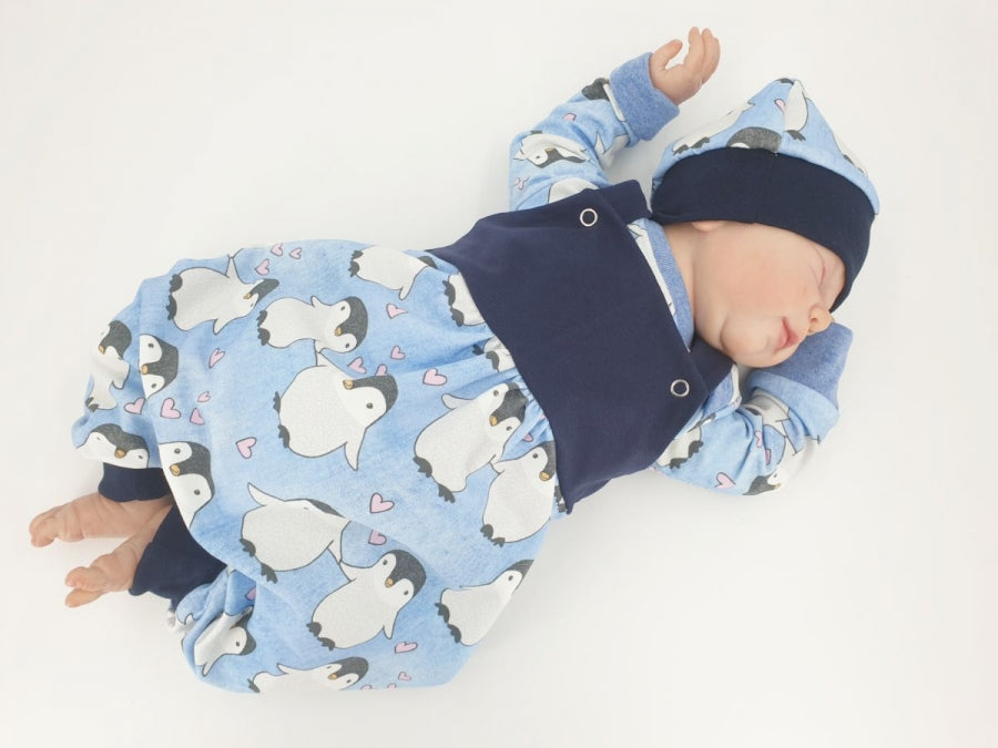 Latzstrampler kurz und lang auch als Baby Set Pinguine blau 9 von Atelier MiaMia