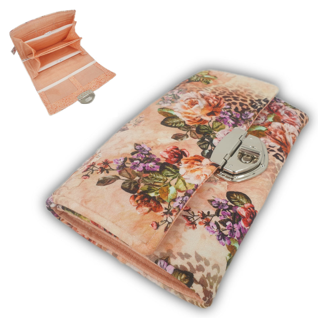 Atelier MiaMia wallet XL with buckle Black with antique rose floral pattern AVAILABLE IMMEDIATELY