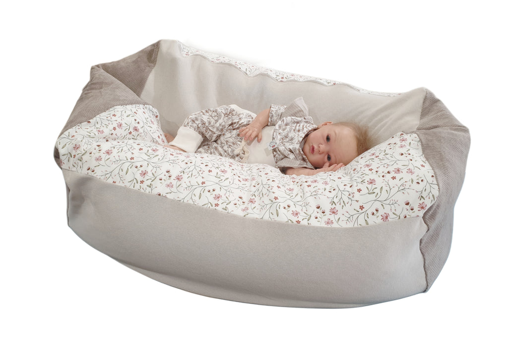 Our great baby pillow is versatile and can be used for several years. Whether a safe cuddly pillow for the very small mice or later in the children's room a comfortable lounging pillow, it is always the perfect gift. The filling of the bag is polystyrene balls and the material is breathable, antibacterial and hypoallergenic.