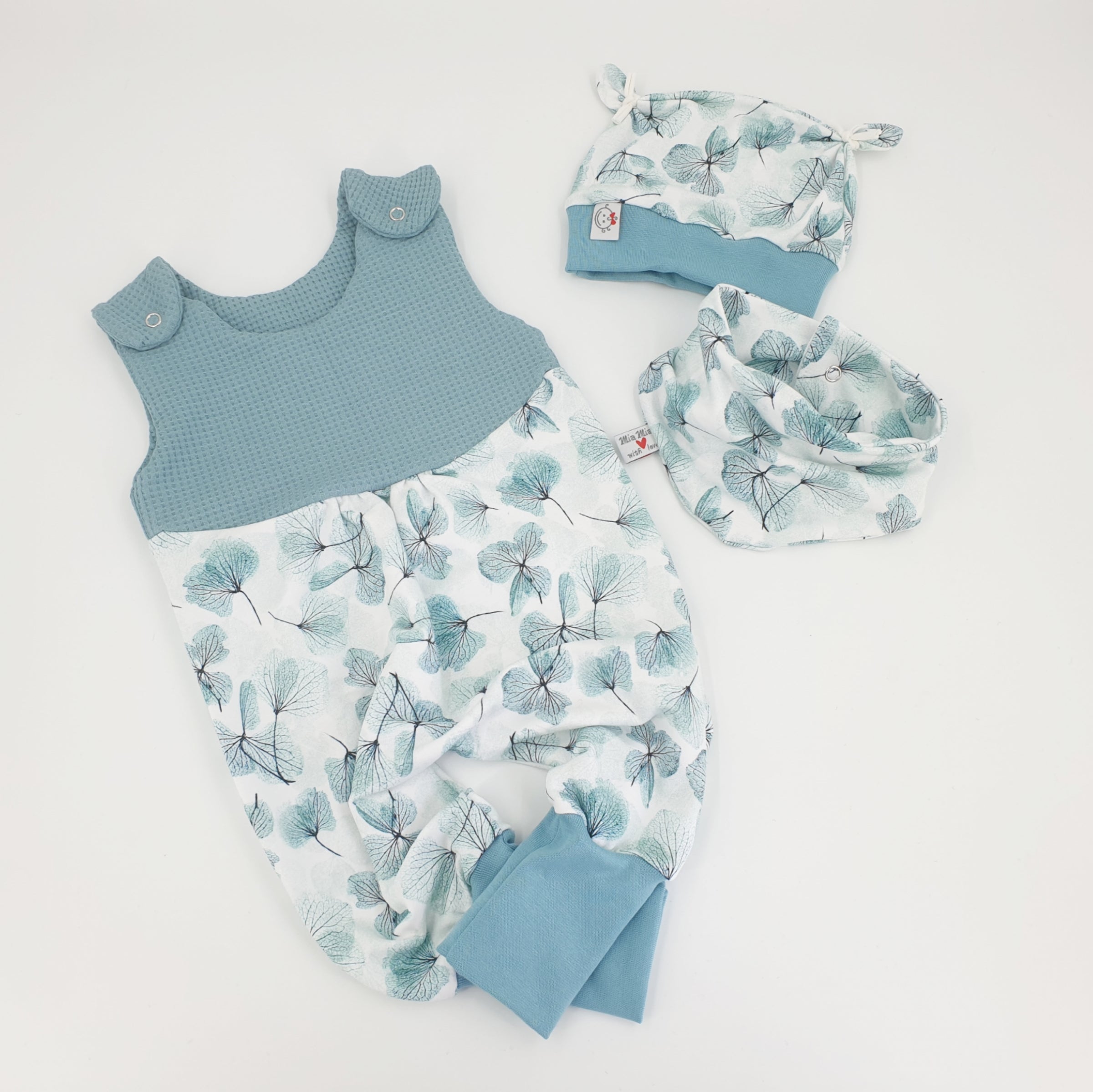 Atelier MiaMia onesie short and long also available as baby set leaves aqua