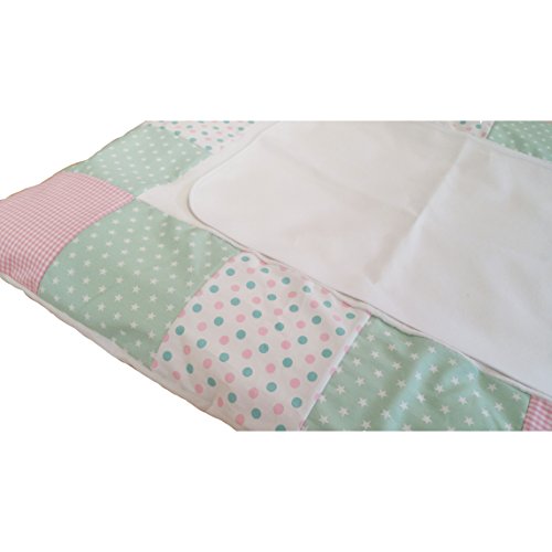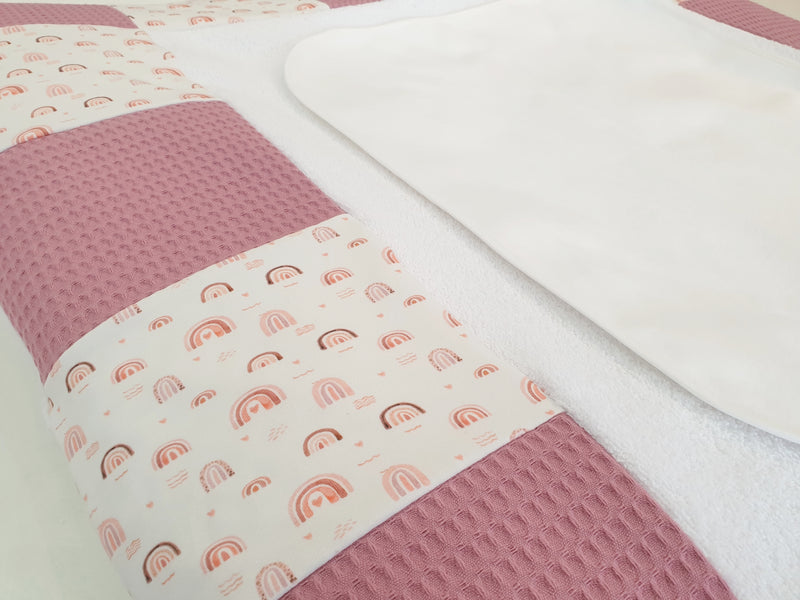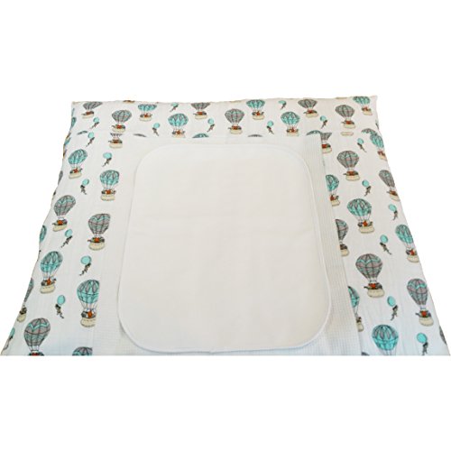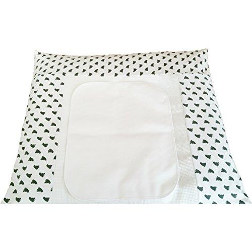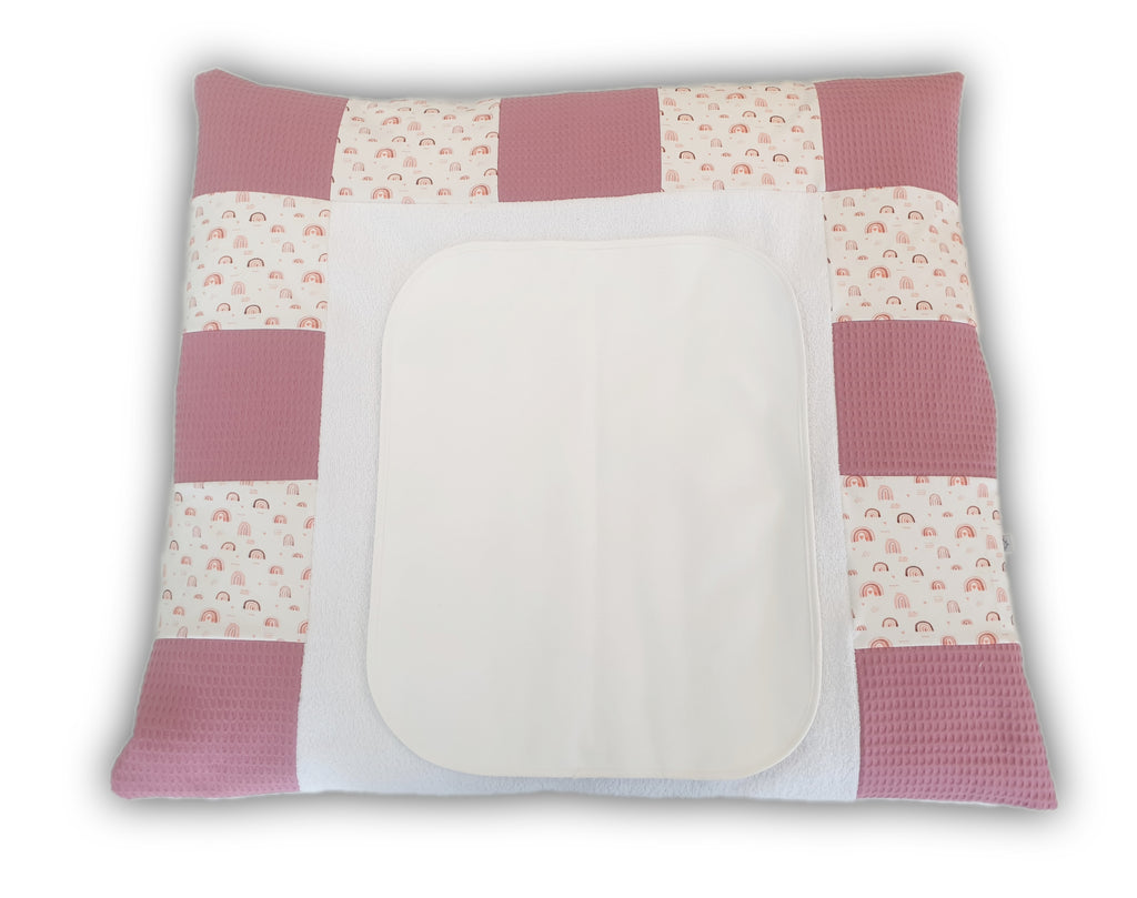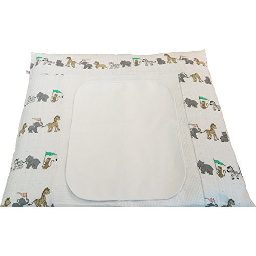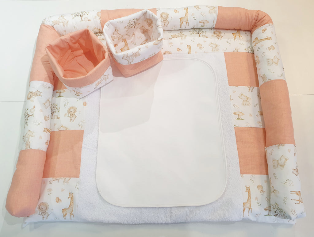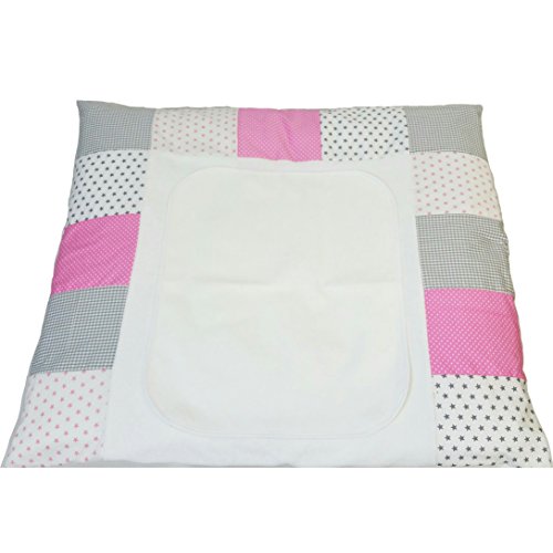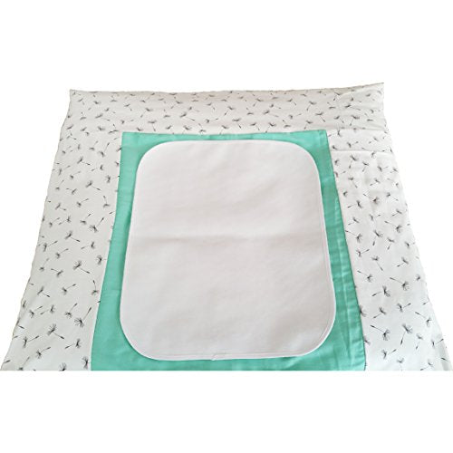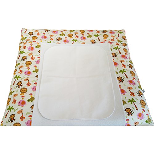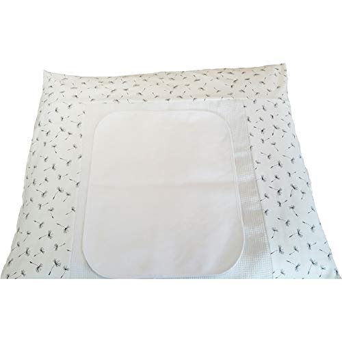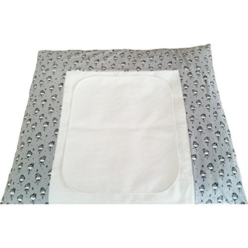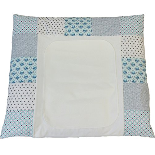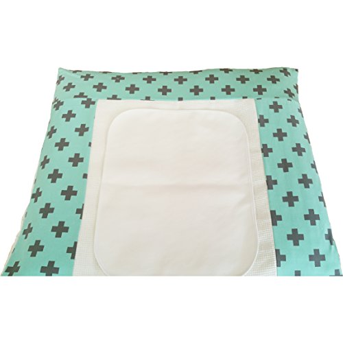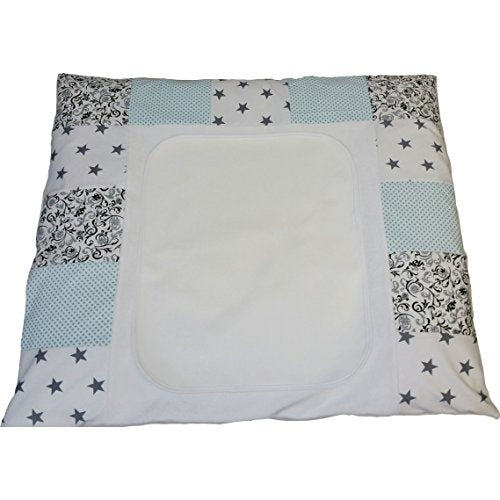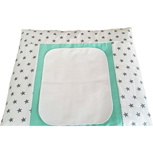 Great changing mat consisting of 3 parts, the ticking, the cover and a waterproof pad. The ticking is breathable, anti-allergenic and anti-bacterial, the thickness is 4 cm in the middle and 6-7 cm at the edge. The cover can be made individually from the color design, select the fabrics at www.schwanger.name and enter them in the shopping cart. The waterproof mat can be washed at 60-90°C. There are no buttons on the cover, as the cotton coating of the mats and the terry cloth harmonize well and nothing slips away.