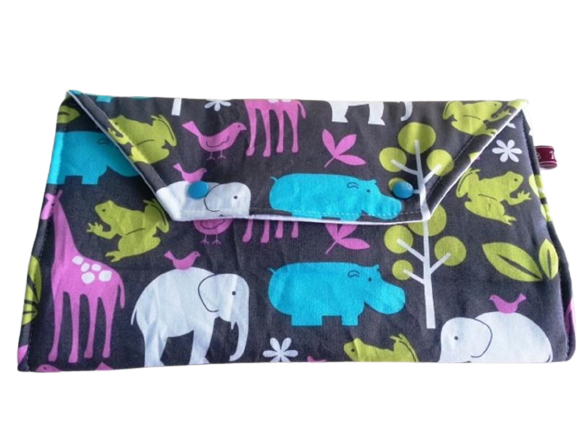 La borsa per pannolini chic per i viaggi. Nella borsa fasciatoio foderata non c'è nessun problema per 2-3 pannolini, una confezione di salviettine umidificate in uno scomparto separato con zip, la crema e un paio di cotton fioc, un ciuccio di scorta e quant'altro ti serva. È composto da diversi tessuti di cotone ed è foderato con un morbido pile e per chiuderlo vengono utilizzati bottoni a pressione.