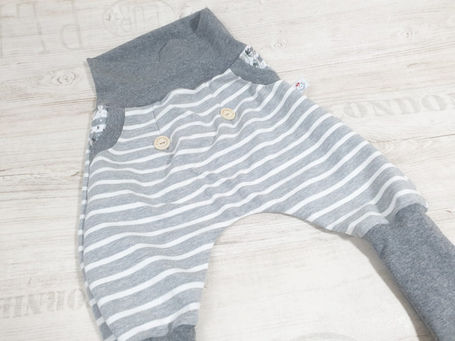 Coole Pumphose oder Babyset Gestreift Grau 80 von Atelier MiaMia