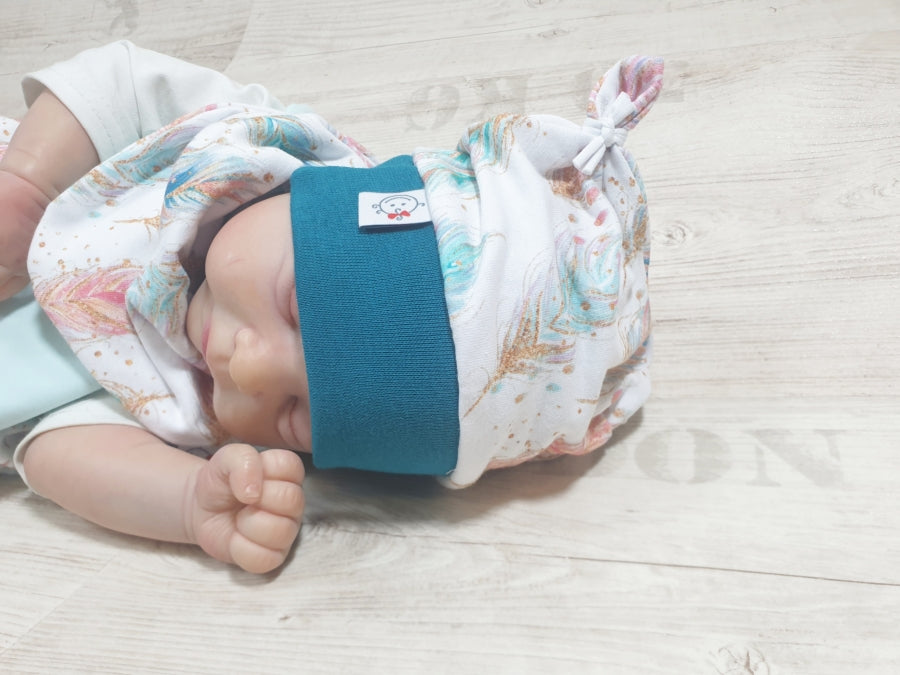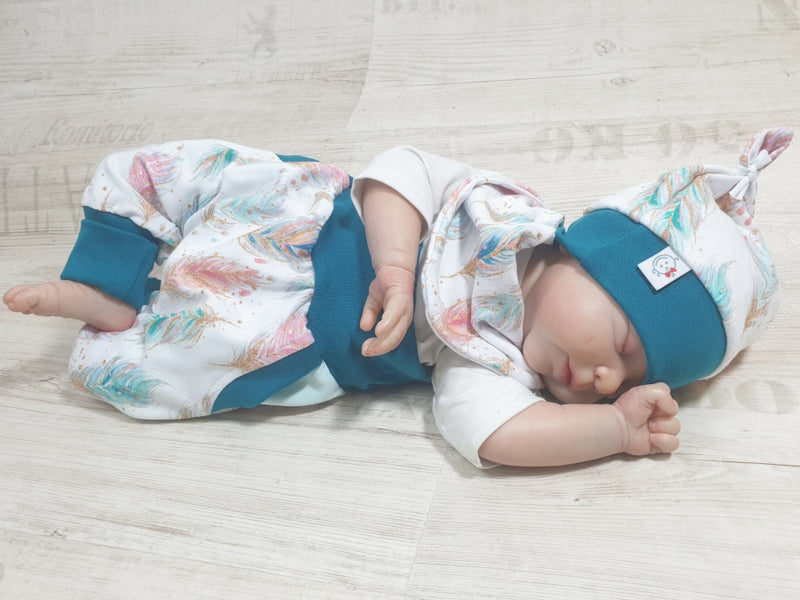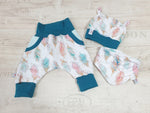 Coole Pumphose oder Babyset kurz und lang Federn blau 47 von Atelier MiaMia