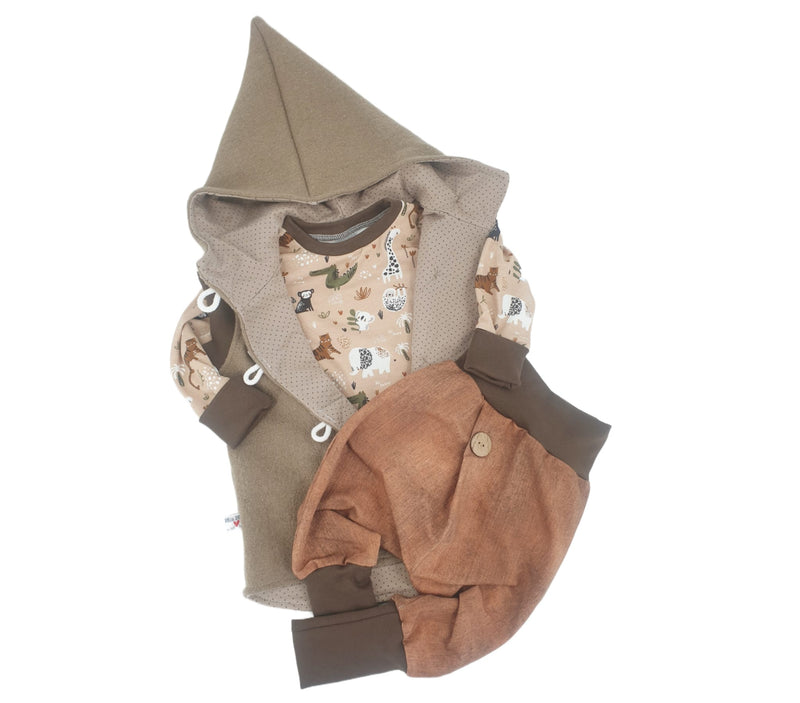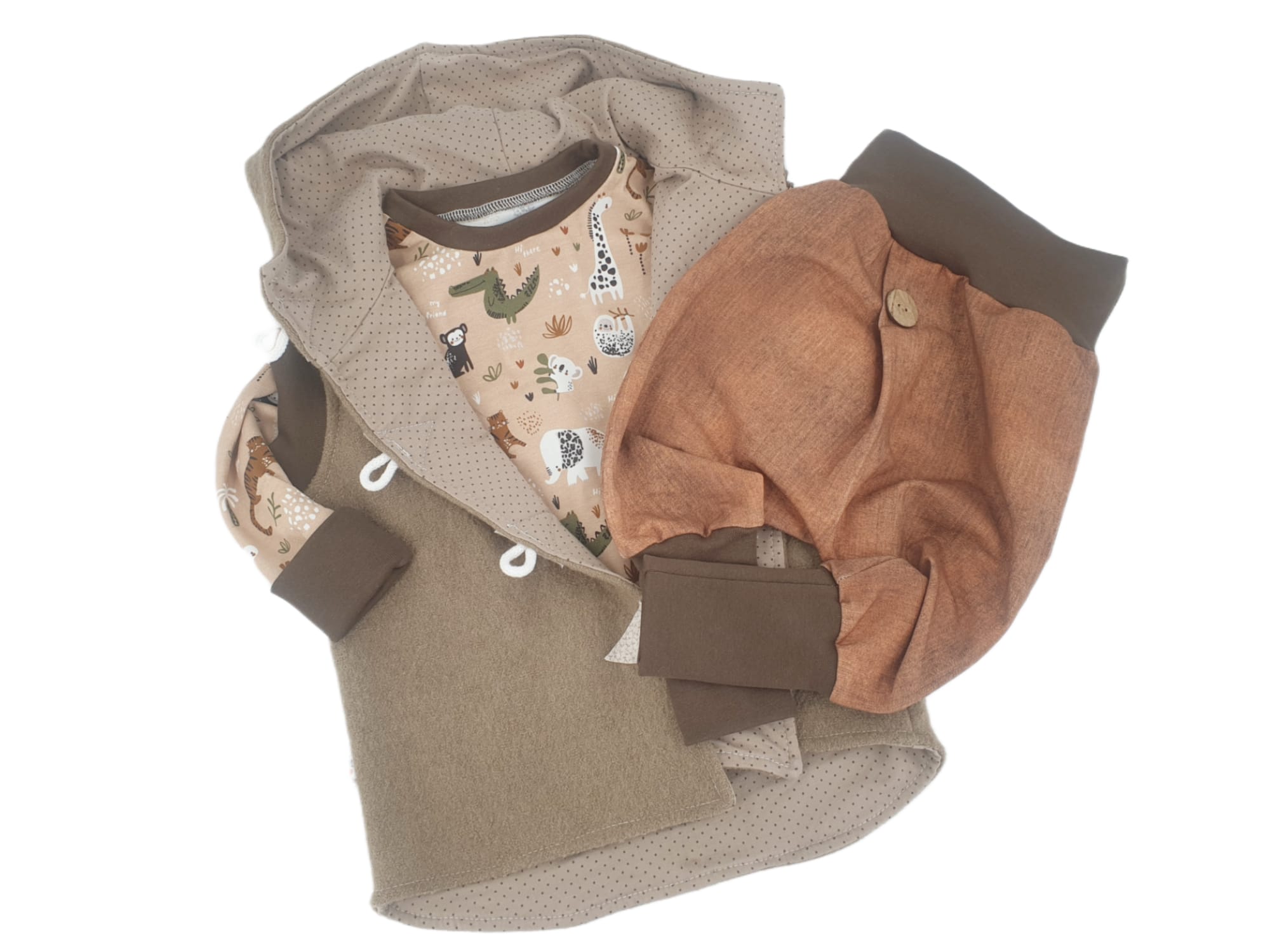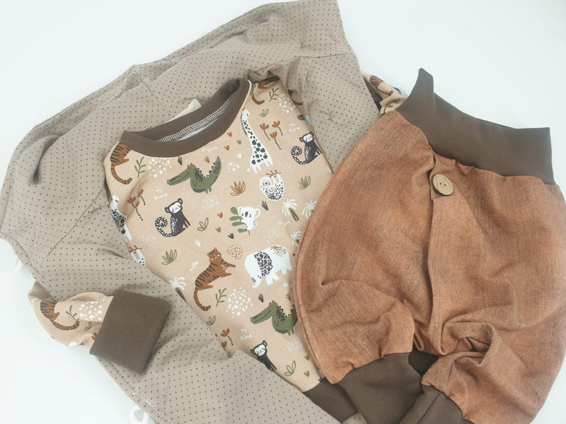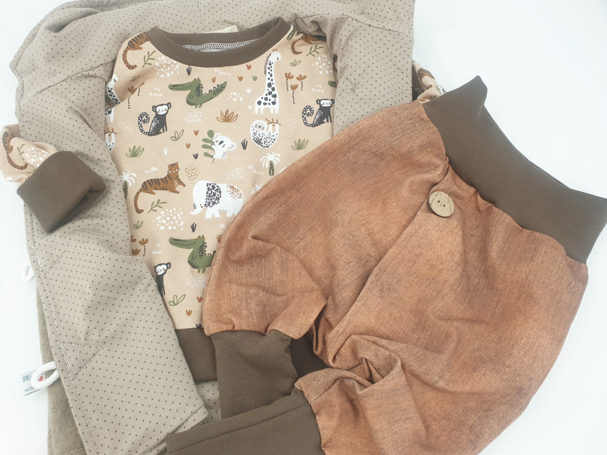 Coole Pumphose | Babyset Jeansoptik Braun – kurz & lang bis Gr. 140 | Handmade