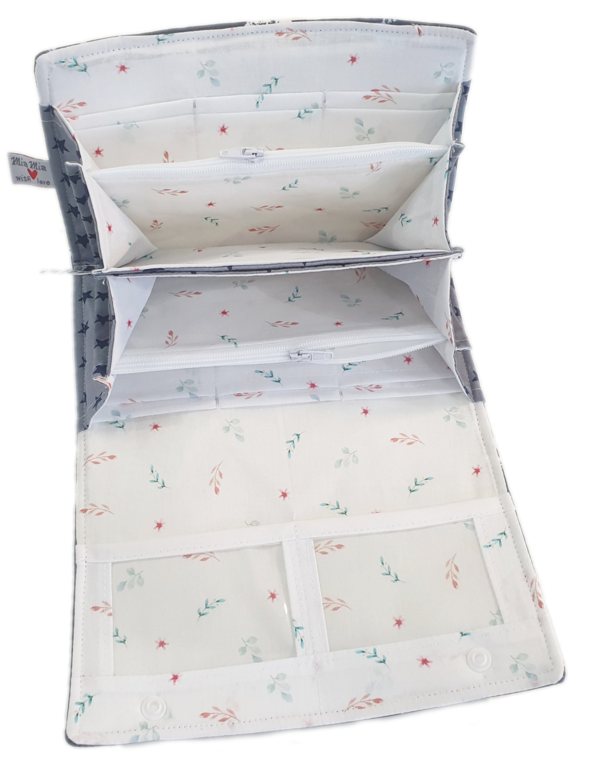 Prachtstück passt Perfekt zu Frauen die wie ich viel Kram in der Geldbörse haben in der XL Gesldbörse ist viel Platz für alles klein kann jeder aber diese hat nicht jeder :o) es passen 12 Karten rein 2 Fächer mit Reißverschluss 5 Fächer für Geldscheine, Rabattkarten ect. und natürlich ganz wichtig 2 Fächer für Bilder damit die Liebsten immer mit dabei sind. Bei der MIDI und der MINI ist es fast genauso ein kleiner Unterschied ist hier das es nur 8 Kartenfächer gibt und die Größe natürlich. Es ist alles gut verstärkt und doppelt Stoff gelegt und genäht damit hast du auch ausreichend Stabilität.