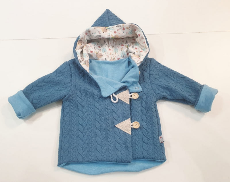Kaputzenjacke Baby Kind Größe 50-140 Grobstrick Jacke Limitiert !! Grobstrick Blau Waldtiere J13 von Atelier MiaMia