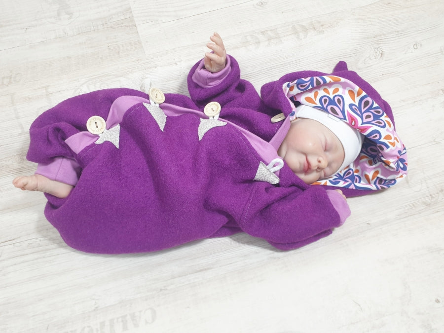 Beschreibung: Kuschelanzug aus tollem Walk Trendiger Walkoverall mit Zipfelkapuze. Wasserabweisend, wärmeregulierend und warm, genau das richtige für die kalte Jahreszeit. In der Kapuze ist ein Jersey verarbeitet damit es am Köpfchen noch etwas weicher ist. Der Overall ist innen nicht mit Extrastoff versehen, damit die wärmeregulierende Wirkung des Walk behalten wird! Auch hier wieder extra lange Bündchen zum länger tragen. Durch den großzügigen Brustüberschlag gelangt KEINE kalte Luft ans Kind. Einfaches an und ausziehen. Beachten Sie bitte das unsere Produkte Hand Made Anfertigungen sind und jeweils auf Kundenwunsch angefertigt werden, es stellt Ihnen Sicher das jedes Produkt ein einzigartiges ist. Des Weiteren sind die Auflagen STRENGSTENS LIMITIERT um sicherzustellen dass Sie ein einzigartiges Produkt erhalten welches nicht jeder hat. Sie erwerben ein Produkt welches in Deutschland gefertigt wird und keine Massenware ist. Sie erhalten Das Produkt nur von uns auf Messen wie der Baby Welt, bei uns im Shop und exklusiv bei Amazon in Limitierter Auflage ! Wolle Waschhinweise: Lauwarmes Wasser Handwäsche Ein Baby Overall bietet einen Rundumschutz Ein Baby Overall ist ein optimales Kleidungsstück für Babys und Kinder. Aus einem Stück gefertigt ist er schnell und komplikationslos übergezogen und hüllt Ihr Baby rundherum ein. Nichts kann verrutschen, ein Overall sitzt bei jeder Witterung perfekt. Baby Overall: Verschiedene Farben und Ausführungen Ob Mädchen oder Junge, ein passender Baby Overall ist schnell gefunden, denn es gibt sie in vielen Ausführungen. Bereits Neugeborene können einen solchen Baby Overall tragen. Werden die Tage etwas kühler, können Sie zu einem Baby Overall aus kuschelig weichem Fleece mit Füßen greifen. Das Material ist nicht nur angenehm weich, sondern auch sehr wärmend. Ein lästiges, gründliches Einkleiden in dicke Winterjacken und Hosen entfällt, der einteilige Schneeoverall ist schnell über die normale Garderobe übergezogen. Die ebenfalls fest angenähte Kapuze hält Kopf, Hals und Ohren warm, Ihr Baby ist rundherum vor Kälte geschützt. Ein Baby Overall ist ein hervorragendes Kleidungsstück, absolut funktional, sieht gut aus und hüllt Ihr Baby ein. Sie verlieren nicht viel Zeit mit dem Ankleiden und können sich so schneller schöneren Dingen widmen. Ein Baby Overall ist zu jeder Jahreszeit eine gute Wahl.